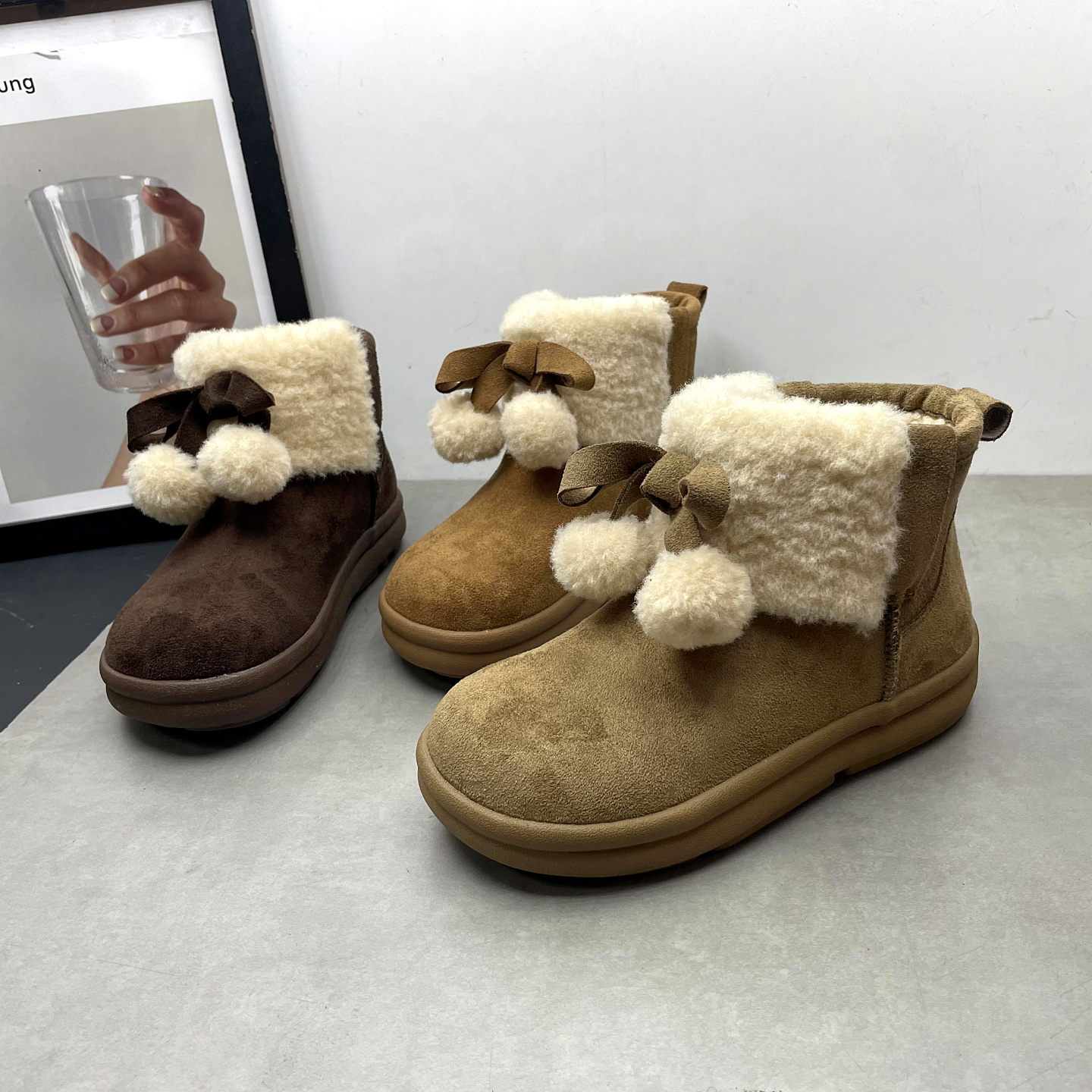 细细条 少女蝴蝶结短筒雪地靴女冬季加绒加厚保暖防水PU棉鞋可爱