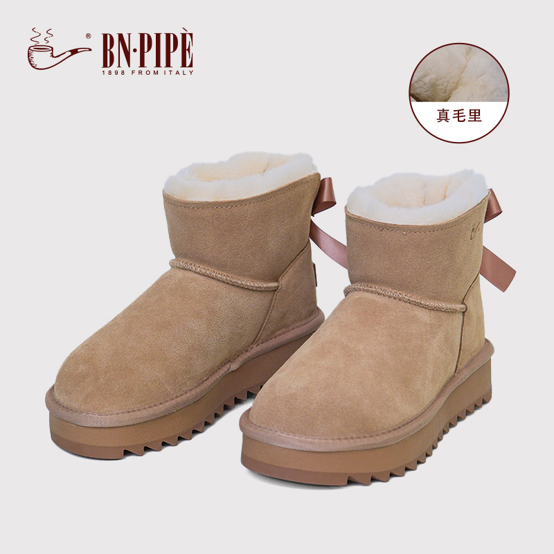 百年烟斗可爱雪地靴加绒加厚冬季网红低帮黑色雪地棉保暖女士棉鞋