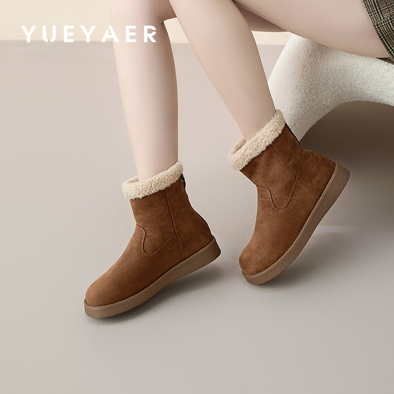 YesDay厚底加绒可爱雪地靴女2025冬季新款保暖棉鞋黑色平底短筒