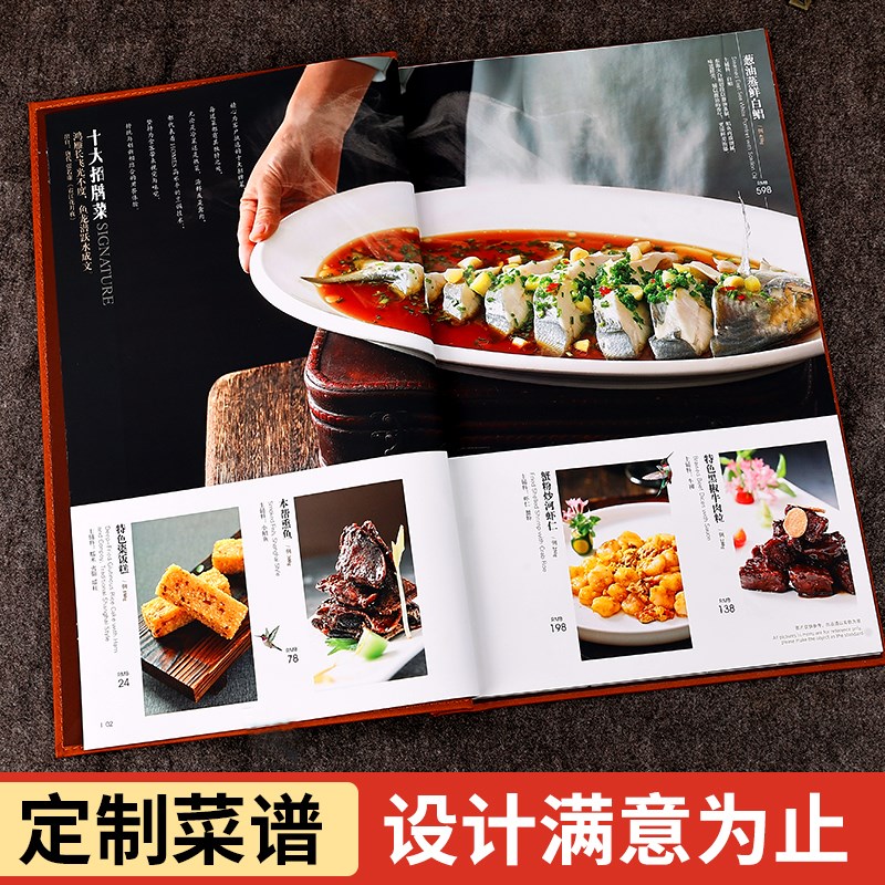 精装皮壳封面菜谱设计制作餐厅高档价目表餐牌菜单活页本插页定做