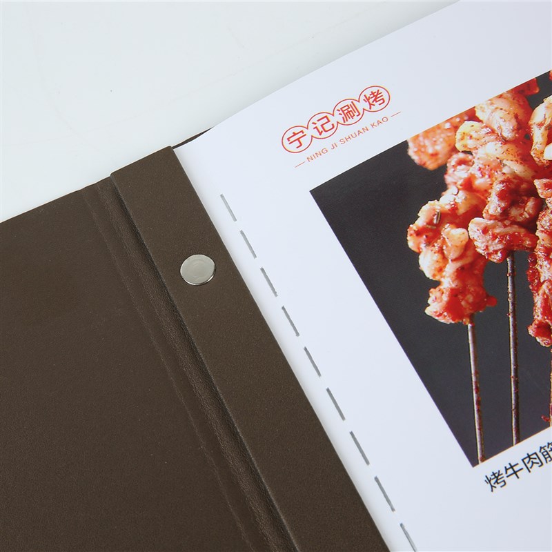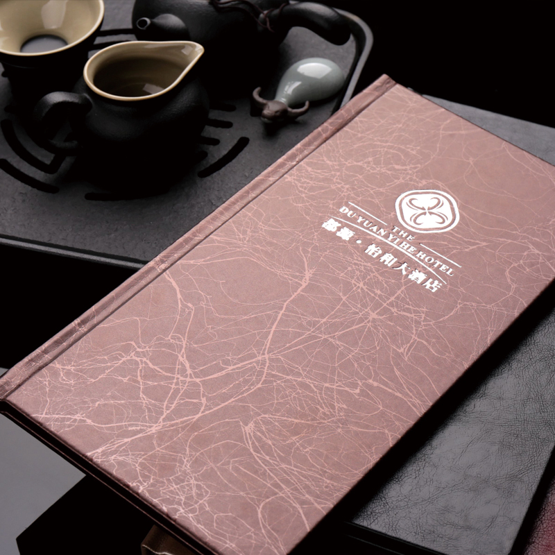 菜谱设计制作优质软皮面进口油墨封边A4活页夹镂空餐牌茶谱酒水单