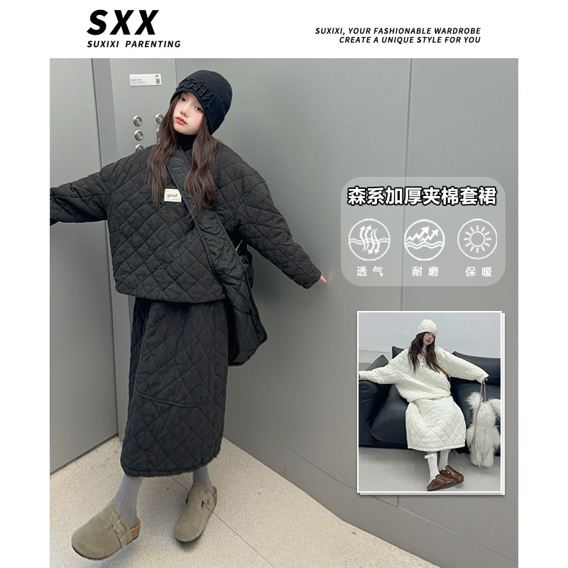 柒号童仓儿童韩系洋气加厚棉服套装冬装新款女童保暖外套时尚短裙