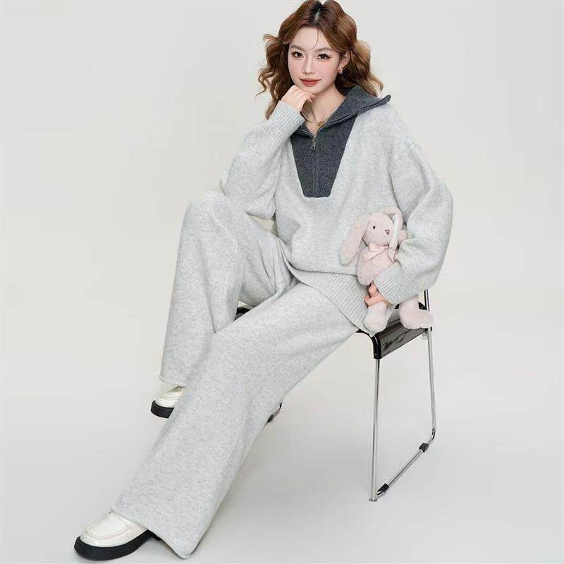 时尚毛衣套装女士两件套秋冬装2026年新款宽松减龄针织套头衫上衣