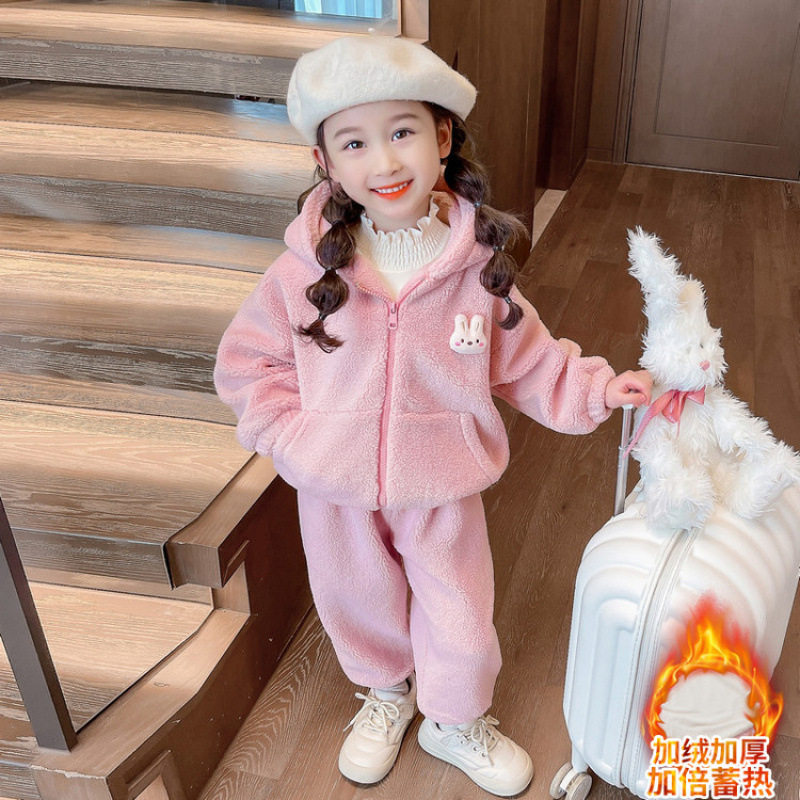 女童冬装套装2025新款儿童加绒加厚休闲两件套洋气女宝宝时尚