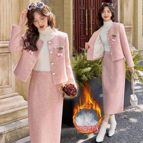 优雅风时尚套装裙2025冬装新款气质百搭小香风两件套90%白鸭绒