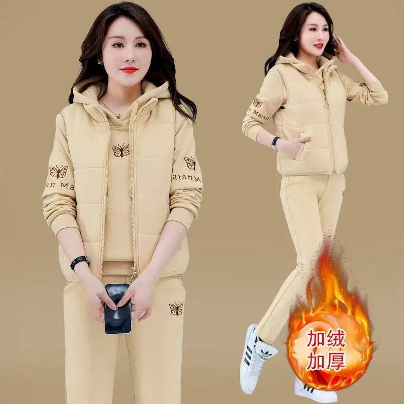 秋冬装加绒休闲运动套装女2025新款冬季时尚洋气保暖马甲三件套潮