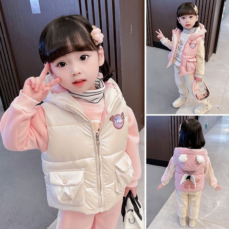 2023新款女童马甲套装秋冬装时尚儿童女宝宝加绒卫衣三件套童装潮