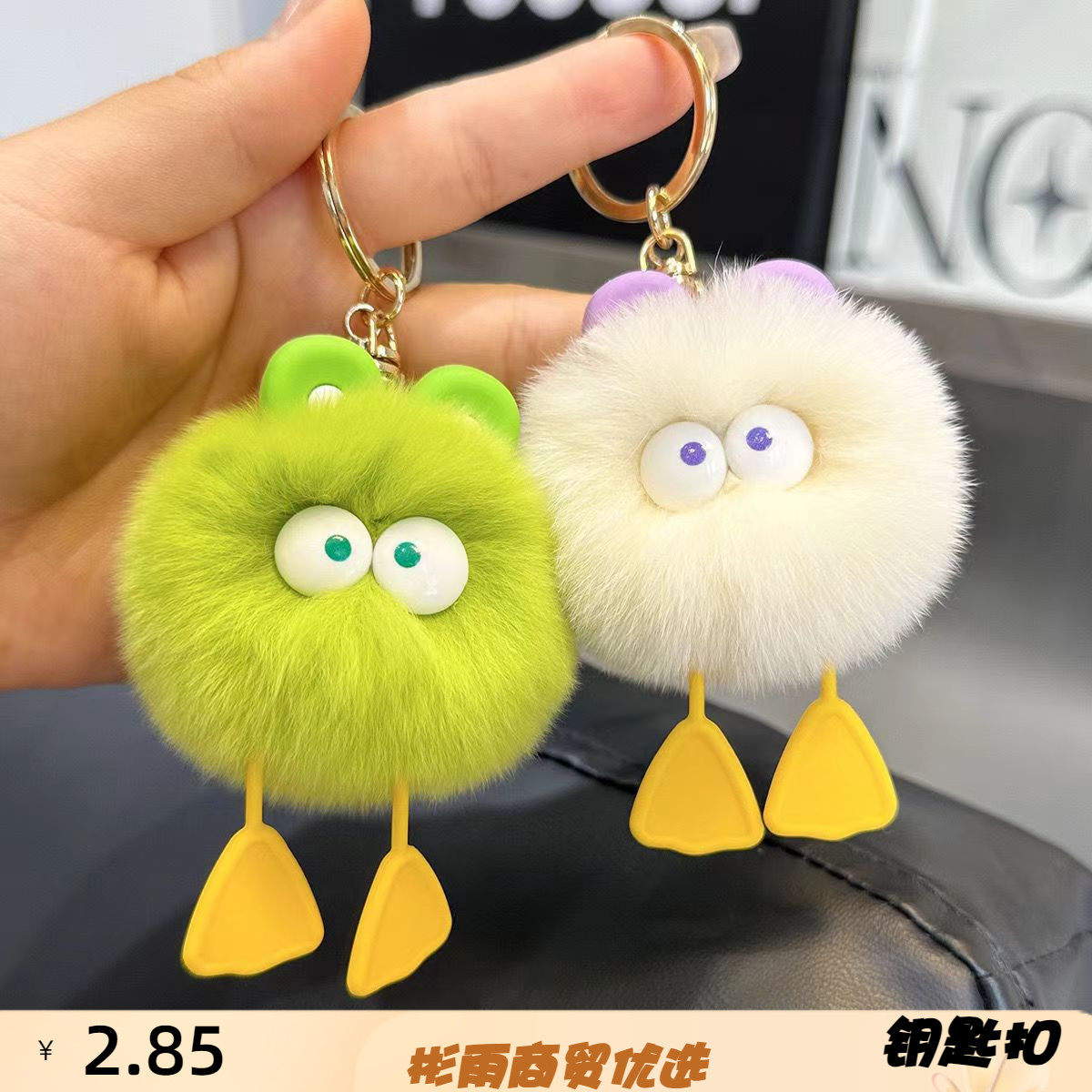 仿獭兔毛小煤球精灵汽车钥匙扣挂件ins网红可爱毛绒公仔包包挂饰