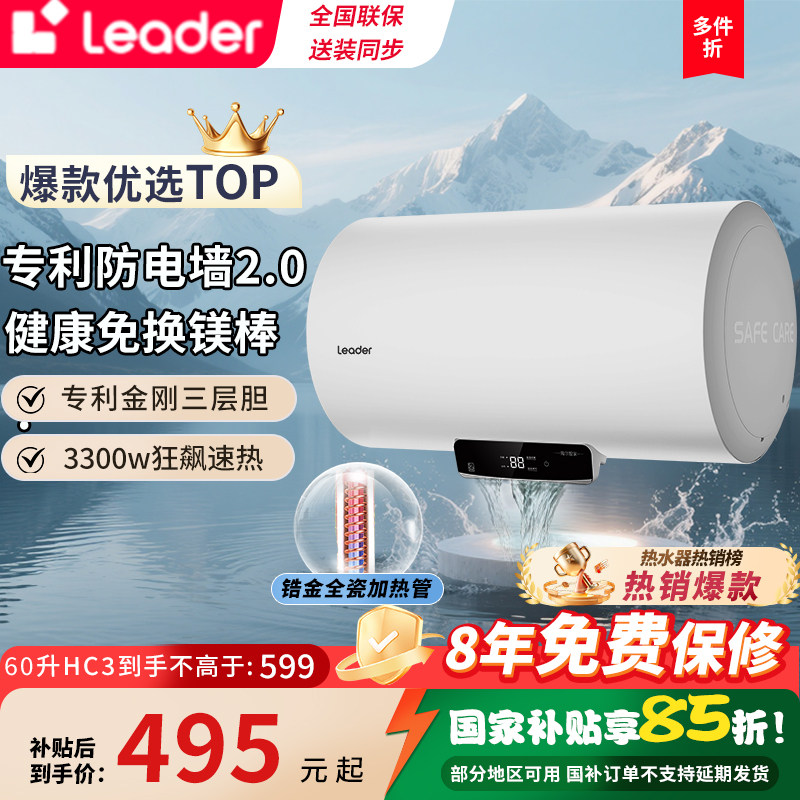 海尔统帅电热水器家用60升一级能效节能洗澡国补补贴变频速热恒温
