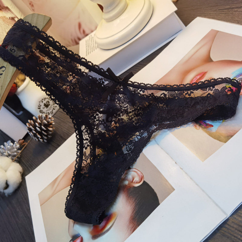 性感诱惑女士透视丁字裤t字裤 镂空蕾丝中腰妩媚潮女式丁字内裤女
