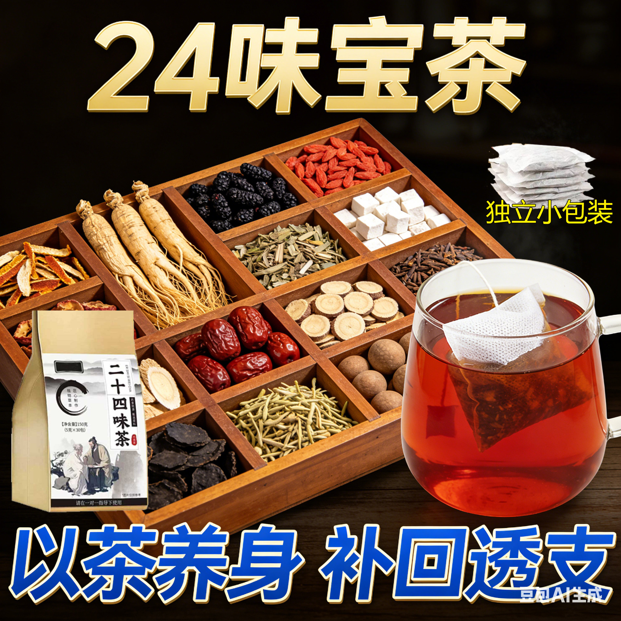 八宝组合补气补血24味滋补桑葚枸杞茶男肾精补固男士养生茶包补肾