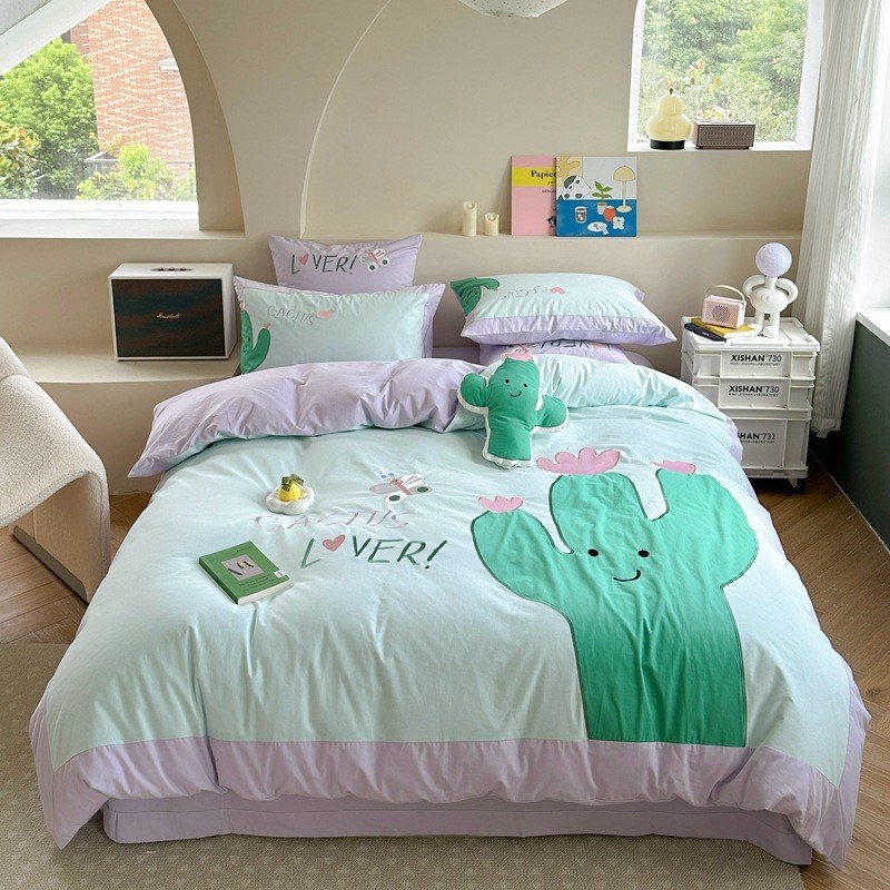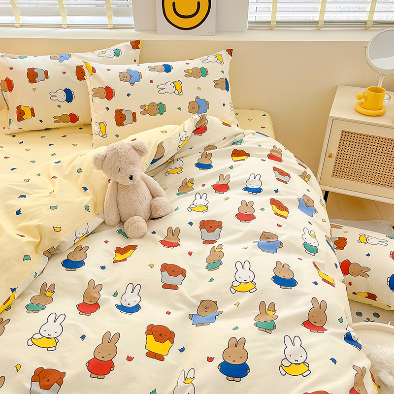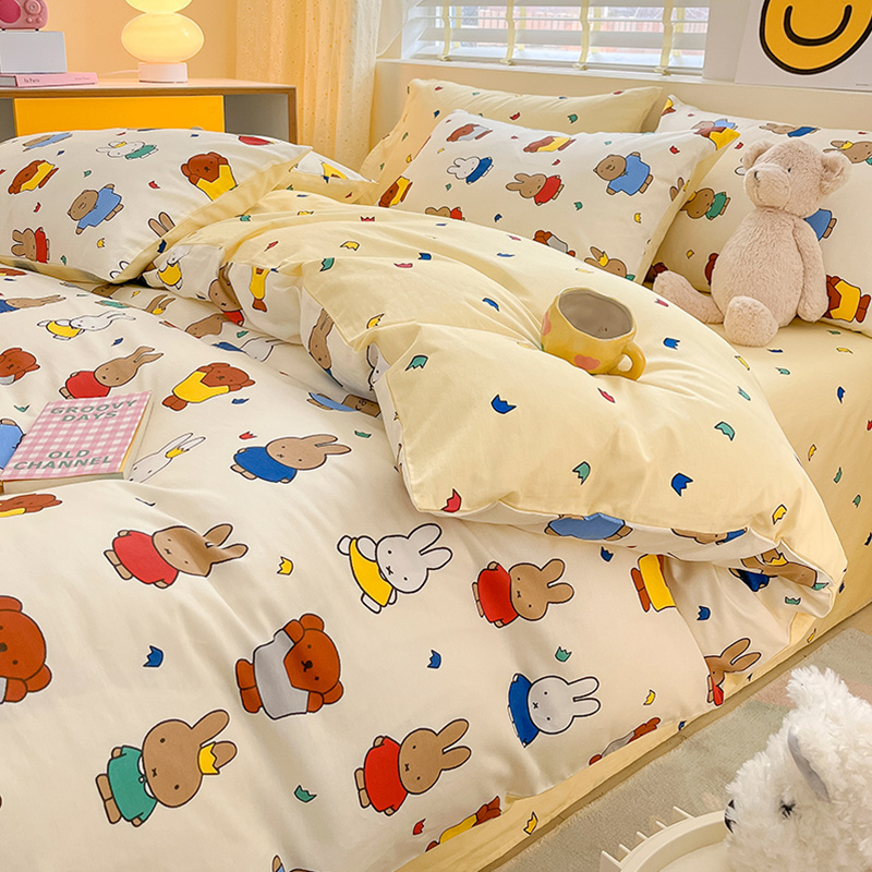 ins风可爱卡通全棉四件套100纯棉被套床单宿舍儿童三件套床上用品