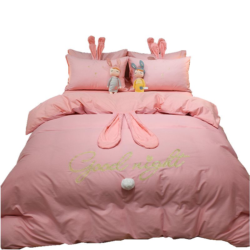 可爱款纯棉水洗棉四件套公主风全棉被套少女心儿童三件套床上用品