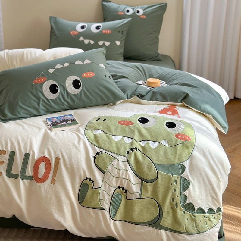 A类小恐龙水洗棉卡通四件套纯棉学生被套全棉儿童三件套床上用品