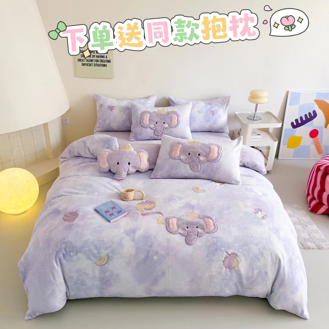a类加厚牛奶绒毛巾绣四件套冬季保暖加厚儿童三件套床上用品批发