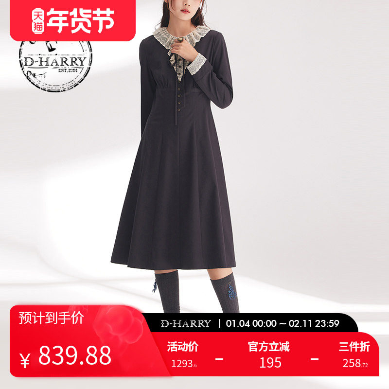 D-HARRY/迪哈利春秋新款时尚蕾丝花边深灰色连衣裙DH241J97023D