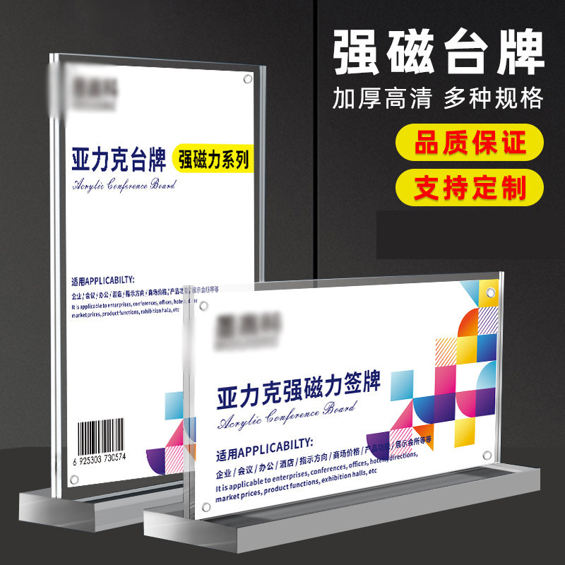 A4亚克力台卡价格展示牌菜单桌牌A5强磁台签展示架水牌广告牌透明姓名牌桌摆台牌T型立牌定制会议牌餐标价牌
