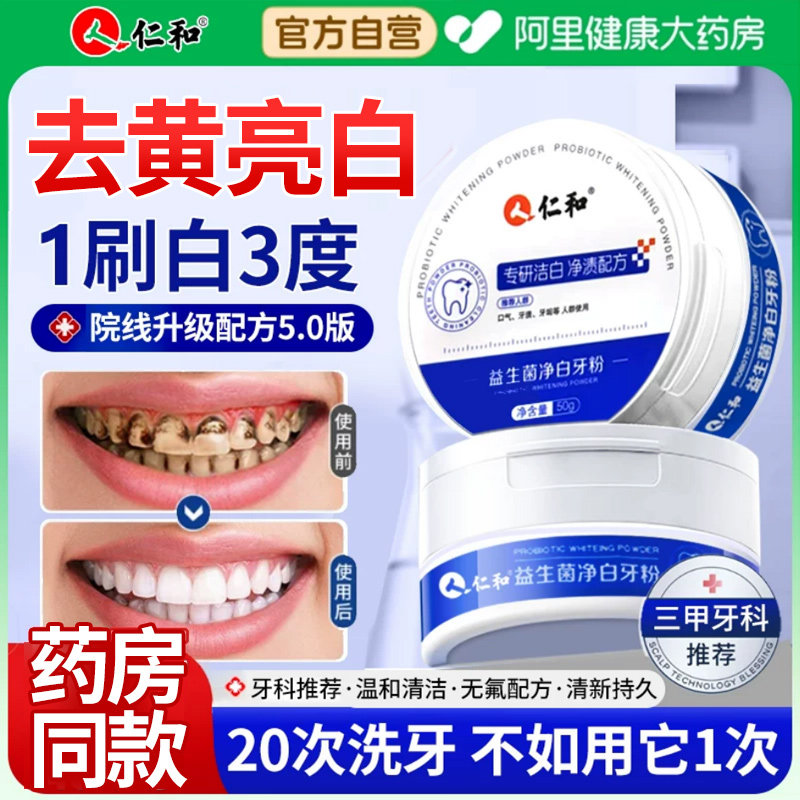 仁和益生菌洁牙粉去黄洗白烟渍牙齿清洁溶解牙结石垢除口臭白牙粉