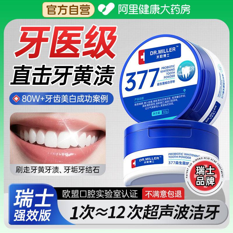 377洁牙粉美白去黄洗牙齿渍清洁结石污垢益生菌除口臭神器旗舰店