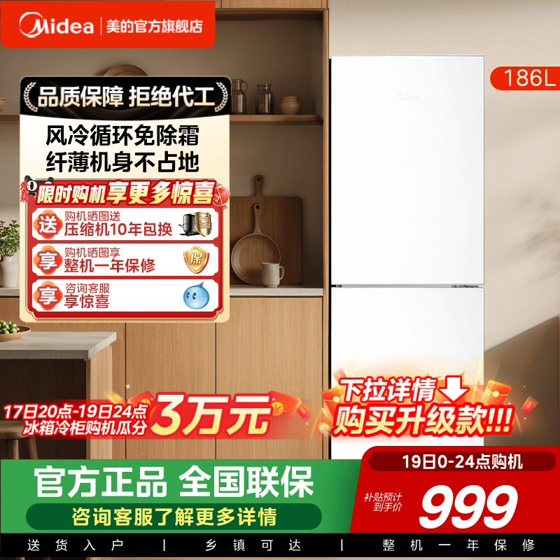 美的出品华凌三门冰箱家用节能两门双门租房宿舍风冷小型以旧换新