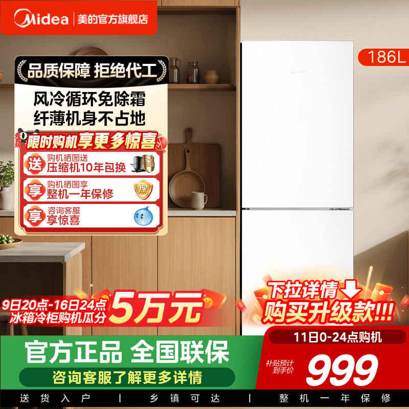 美的195风冷无霜双门两门小户型电冰箱官方家用出租房宿舍用节能