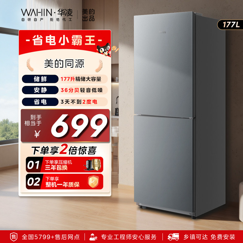 美的出品华凌185双门双开门家用小冰箱省电超薄冷冻冷藏租房宿舍