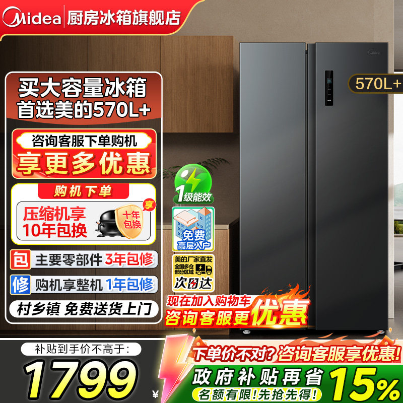 【政府补贴】美的606/570L+对开双门大容量一级节能风冷家用冰箱