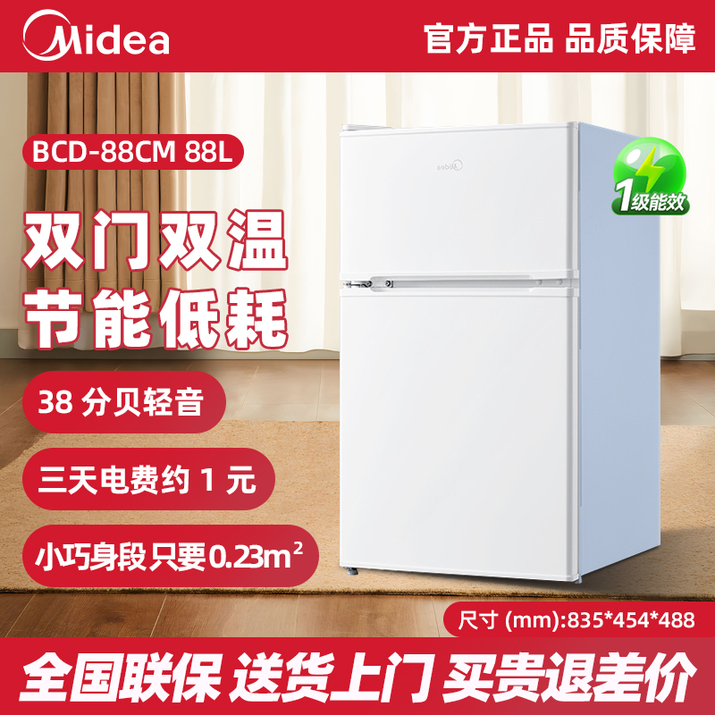 美的冰橱88升双门小型冰箱两门家用办公室节能电租房宿舍冷冻藏