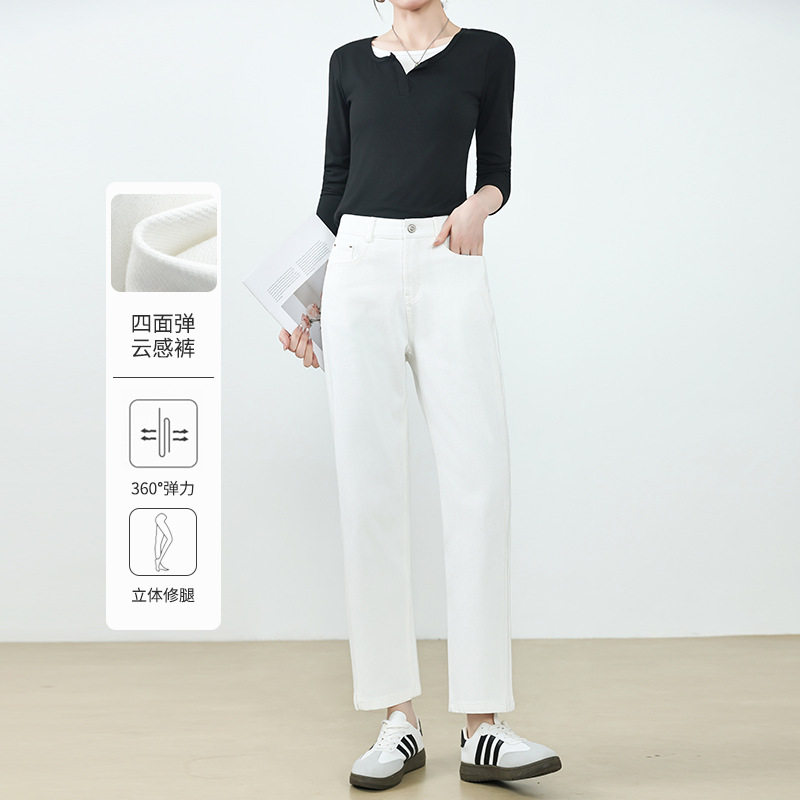 四面弹白色高腰小直筒牛仔裤女2026年春季新款通勤百搭九分烟管裤