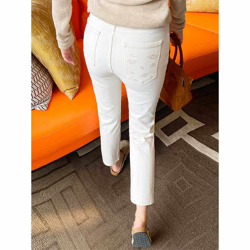 - 白色破洞裤女