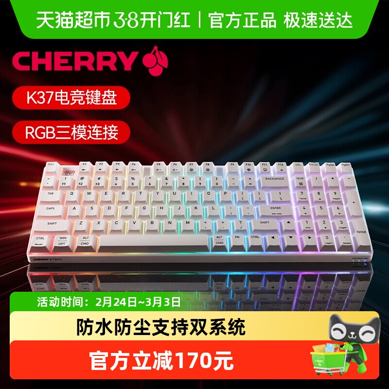 CHERRY樱桃K37机械手感键盘防水RGB无线三模电竞游戏办公键盘