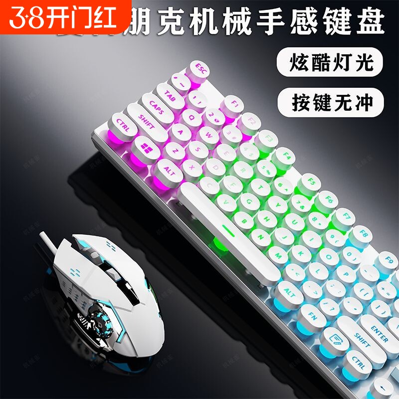 机械手感键盘鼠标套装有线电脑游戏电竞专用三件套笔记本白色悬浮