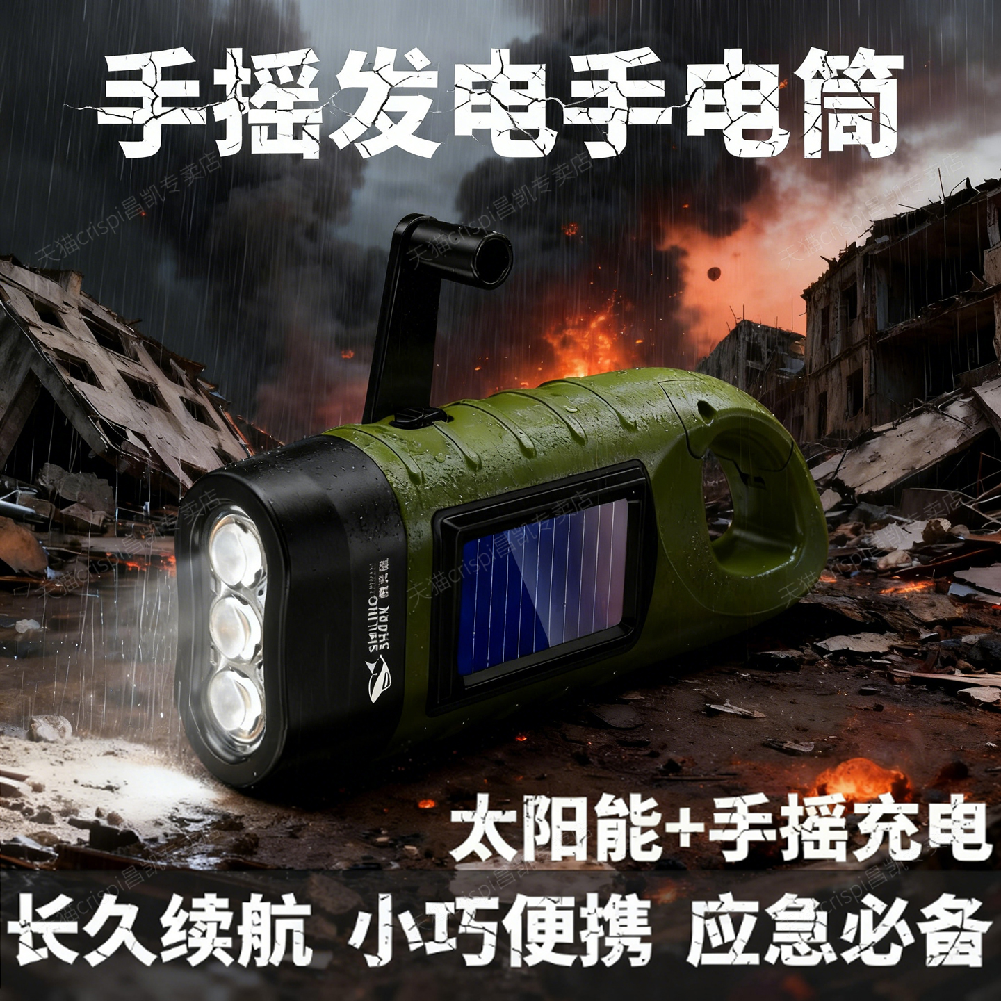 强光手电筒手摇发电太阳能充电应急便携军工战备超长续航户外防水