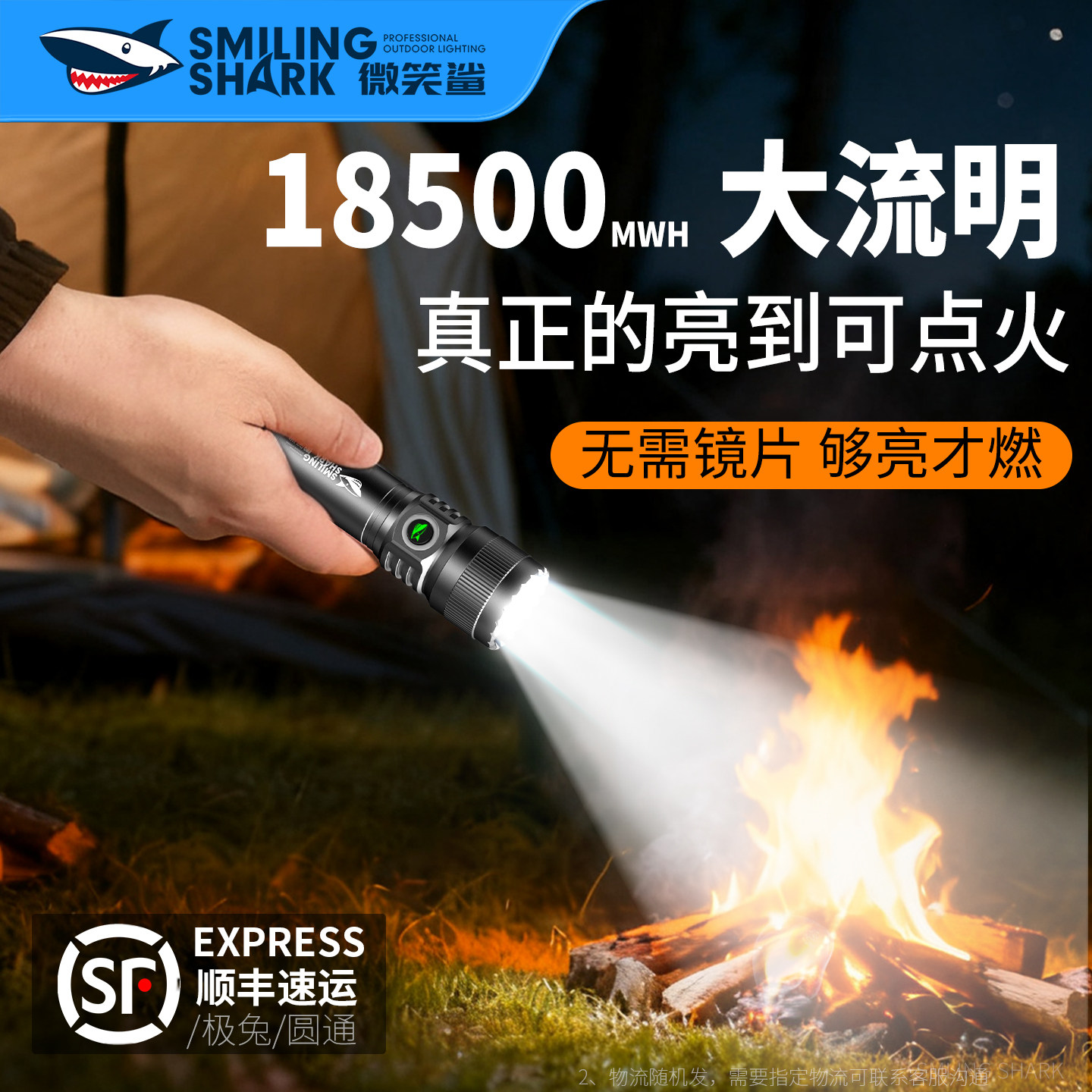 微笑鲨手电筒强光充电迷你超亮远射户外小便携家用防水学生长续航