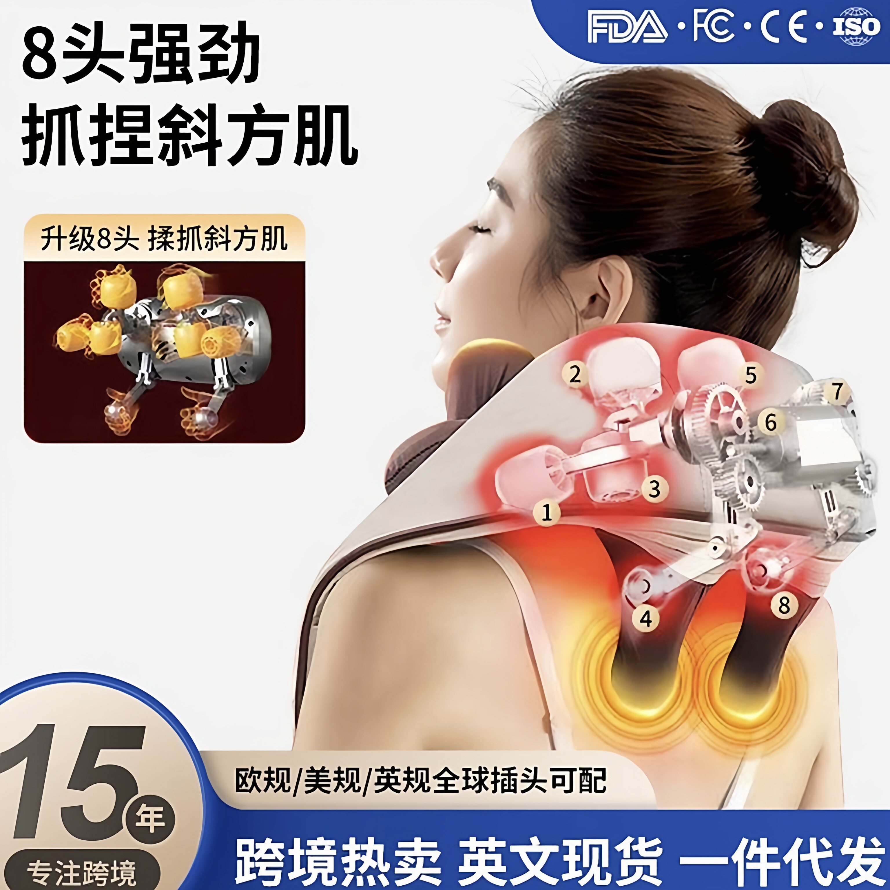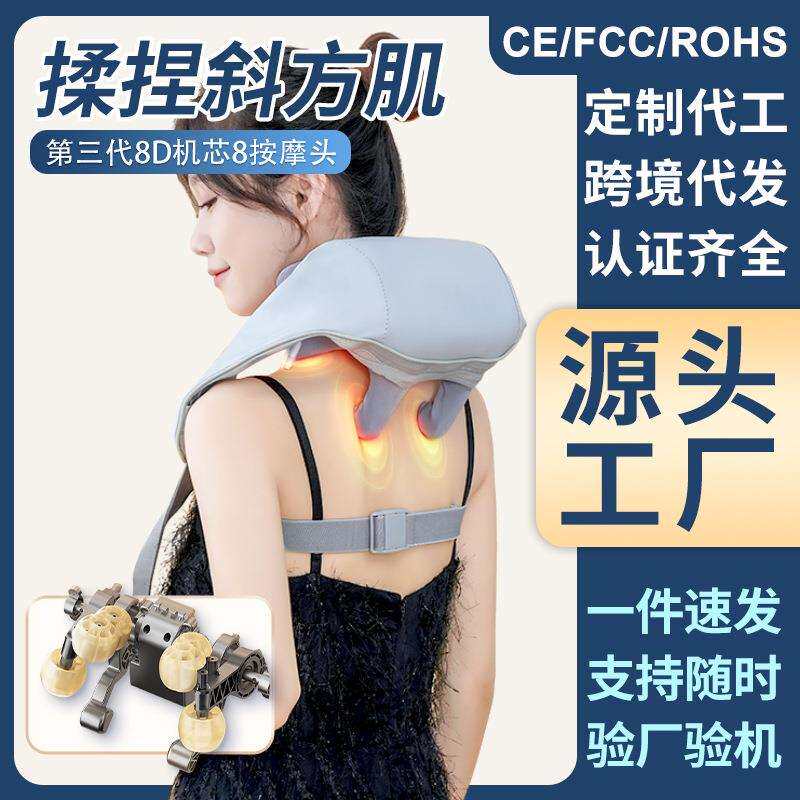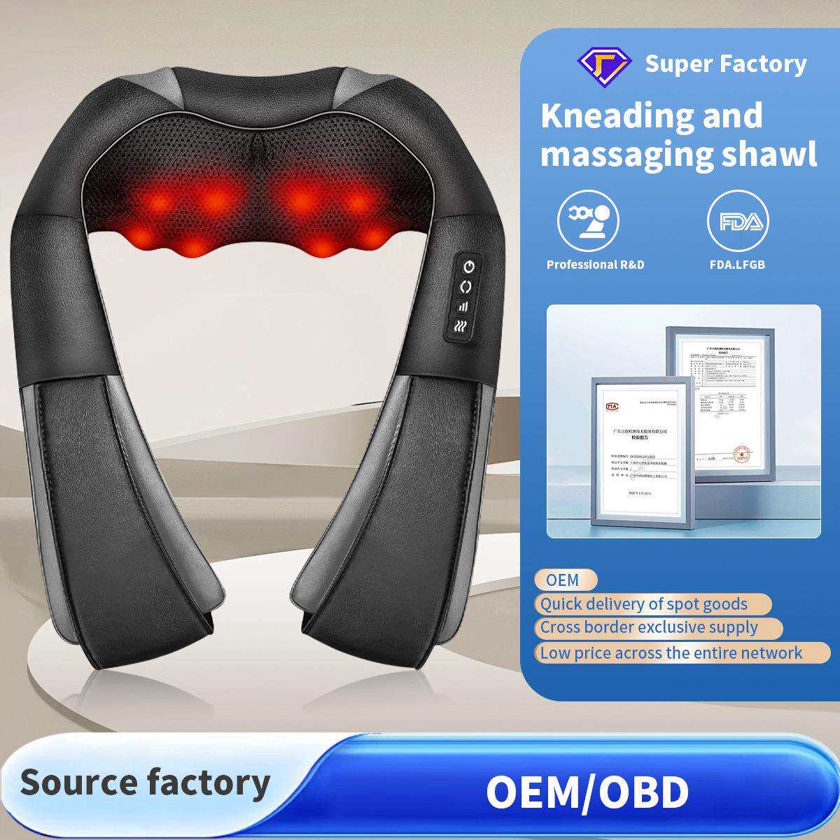 跨境按摩披肩按摩器揉捏家用加热颈椎按摩器腰背部按摩仪一件代发