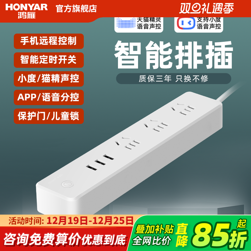 鸿雁智能插排鱼缸小度音响语音插排wifi手机远程遥控定时开关分控