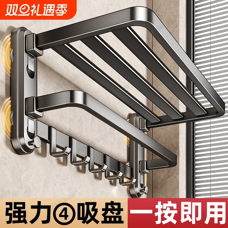 潜水艇枪灰毛巾架卫生间免打孔浴室置物架高端可折叠挂浴巾架套装