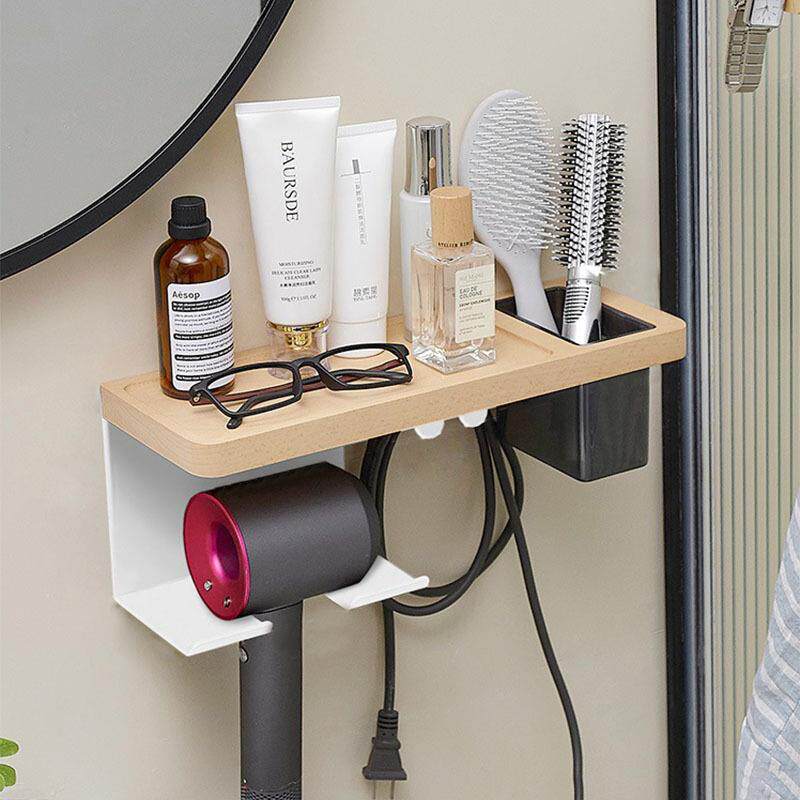 胡桃木吹风机架浴室置物架免打孔电吹风支架多功能卫生间风筒挂架
