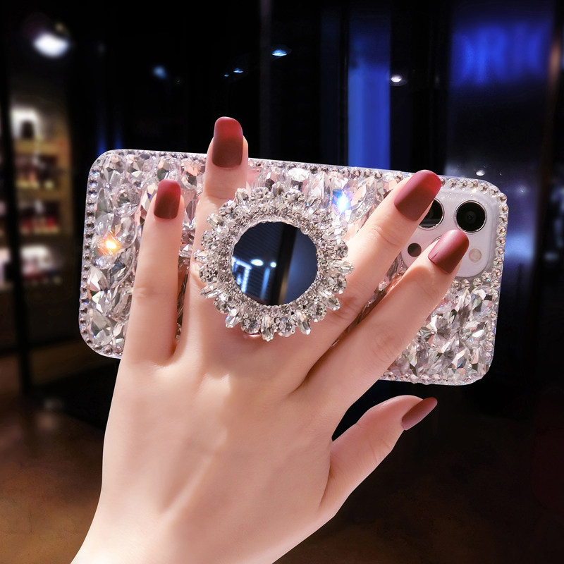 高级奢华水钻手机壳适用苹果17promax 16 15 14 13手机壳补妆小镜子12立体XR滴胶定制7 8plus新款se2代保护套