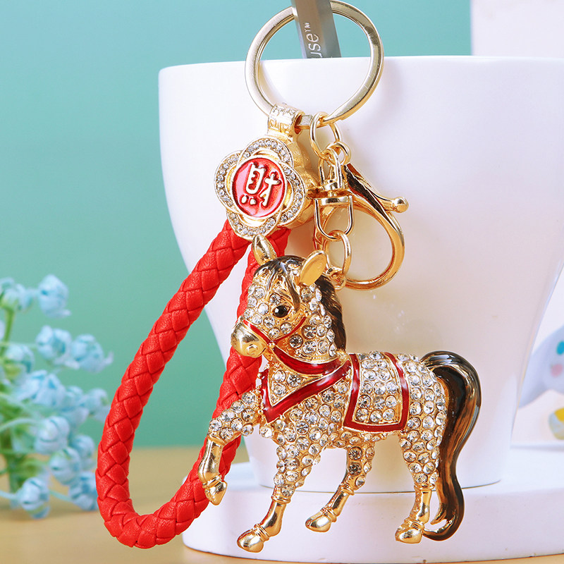 新款招财创意镶钻生肖马汽车钥匙扣女可爱包包挂件精致钥匙链礼品