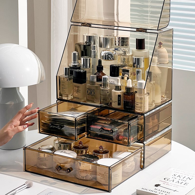 化妆品收纳盒桌面高级感透明带盖化妆刷收纳筒梳妆台置物架抽屉式