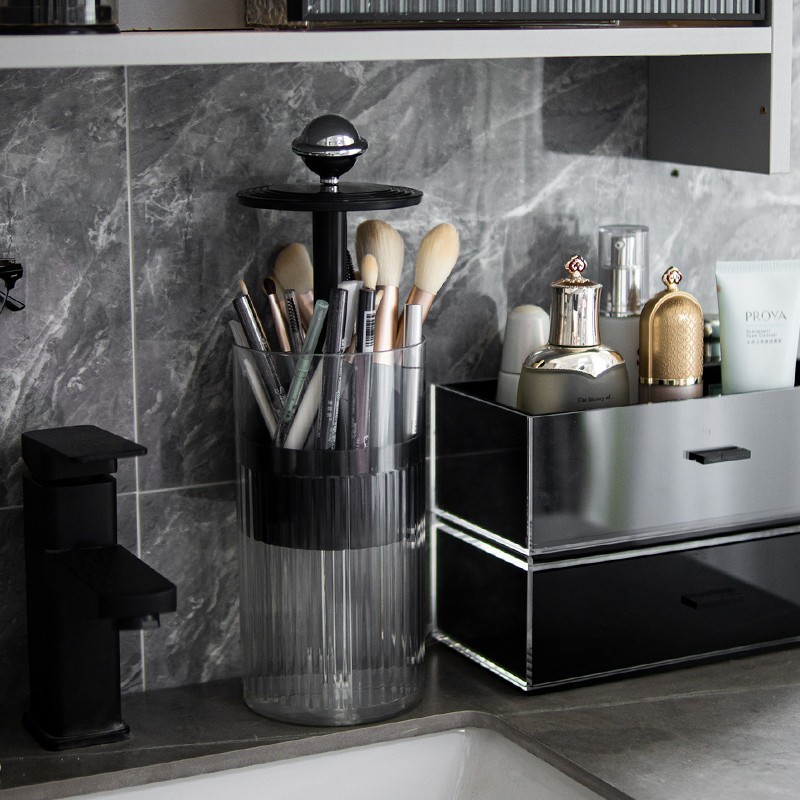 化妆刷收纳筒梳妆台桌面高级感自动升降化妆品盒子眉笔眼影刷子筒