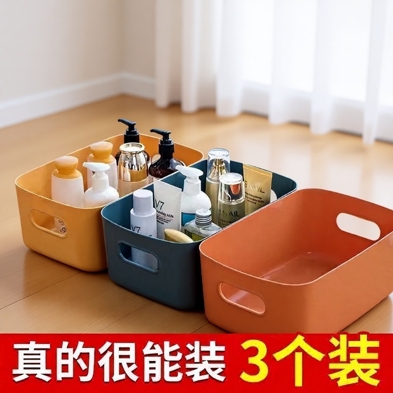杂物收纳盒桌面化妆品盒子塑料整理盒厨房储物盒零食收纳筐子白色