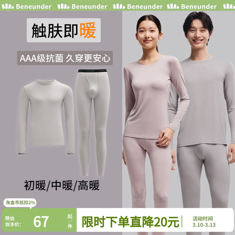 海澜之家男士保暖内衣男款薄款上衣裤子秋衣秋裤套装女士纯棉抗菌