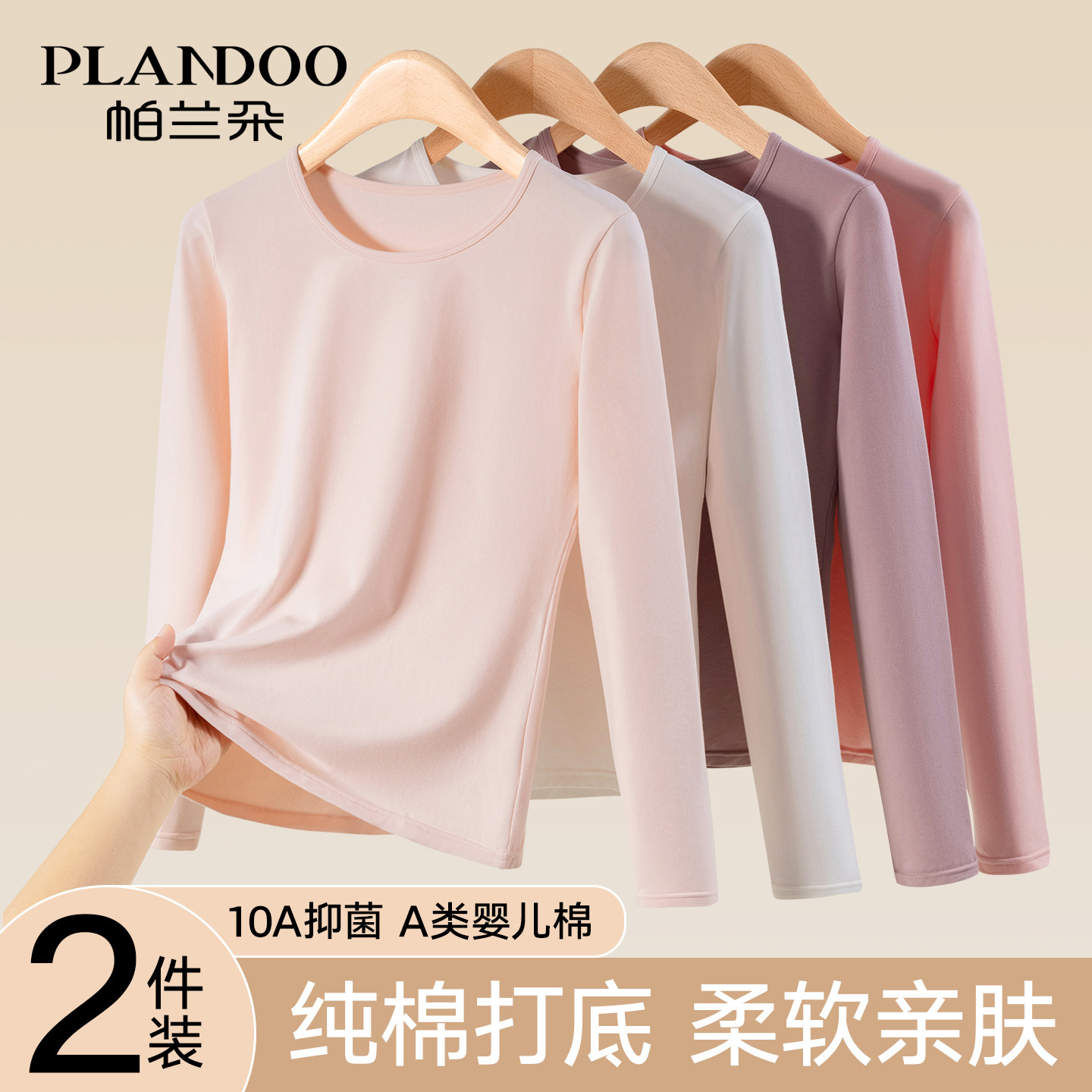 帕兰朵纯棉秋衣女款单件上衣全棉薄款保暖内衣内穿打底棉毛衫冬季