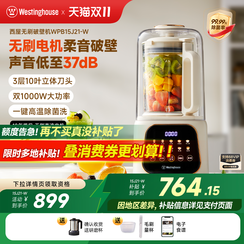 西屋无刷柔音破壁机家用全自动多功能钛涂层榨汁变频料理机J37-W