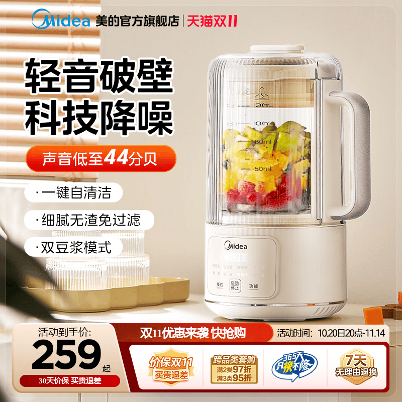 美的破壁机家用全自动无渣多功能豆浆料理榨汁一体轻音2025新款静