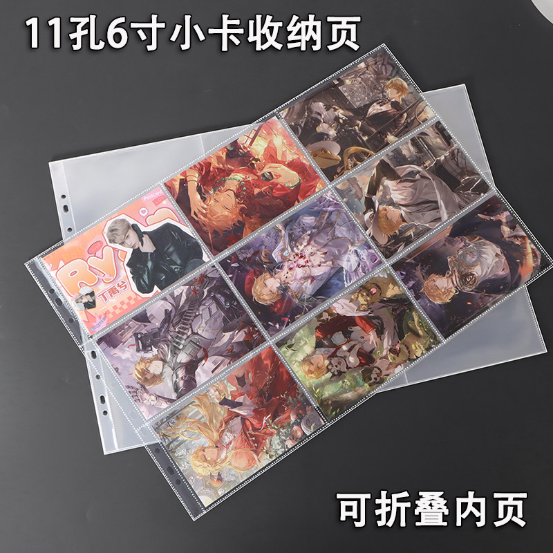 新款6寸照片收纳页11孔9格可折叠高透卡页明信片动漫小卡收藏替芯