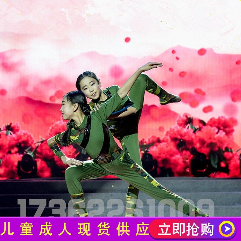 新款儿童兵娃娃演出服小荷风采出发成人舞蹈表演服迷彩军装男女款