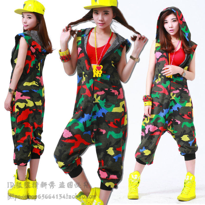 新款少儿HIPHOP迷彩连体哈伦裤成人街舞表演套装爵士舞台ds演出服